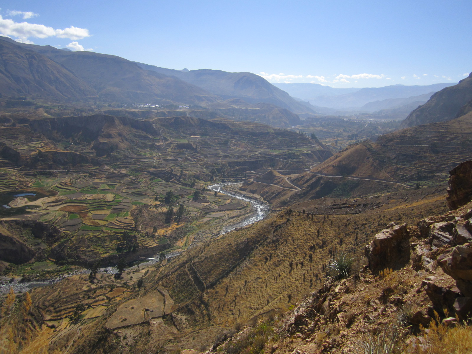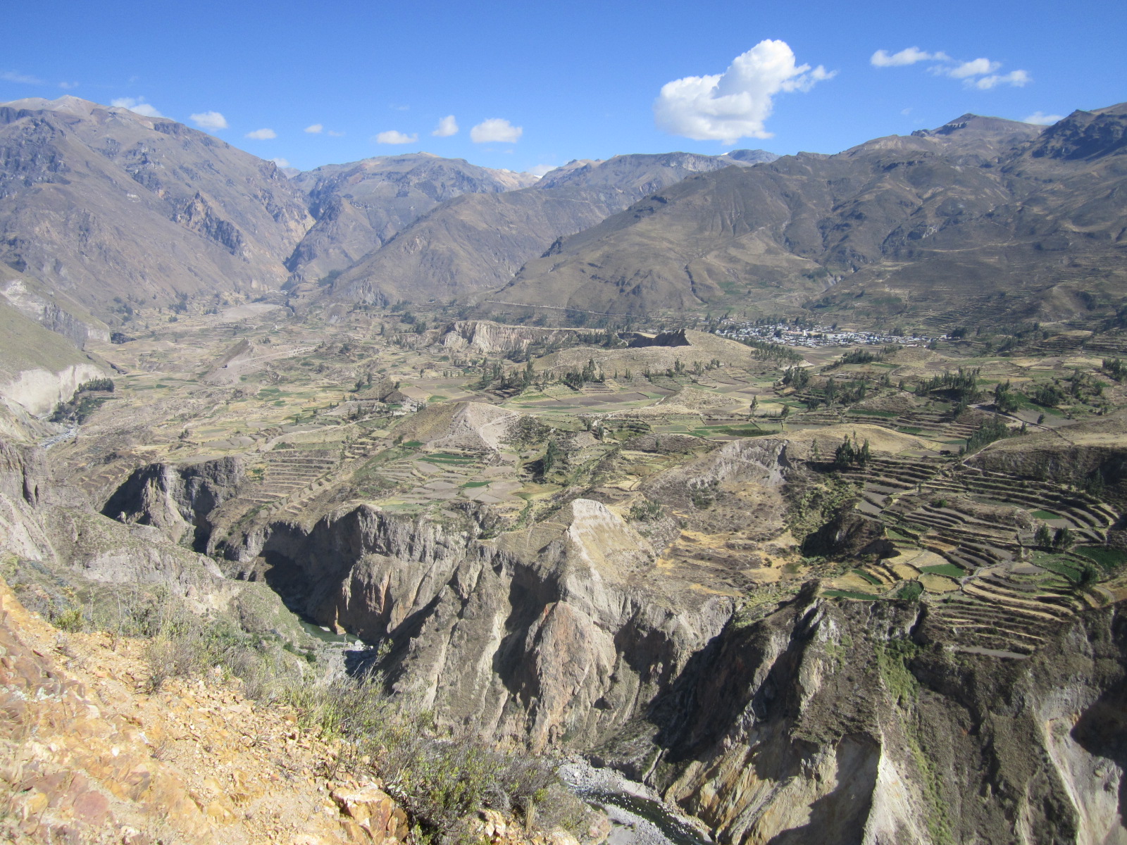 Colca Canyon, the target of our tour that day, was over 11,000 ft ( over 3400 m) deep and is known for its beautiful terraces and gliding condors. Cotahuasi – at a depth of over 11,500 ft (over 3500 m) is reportedly the deepest canyon in the world. With so much to see in this region, I was amazed that I had not once caught a glimpse of this well kept secret in travel magazines or travel sites.