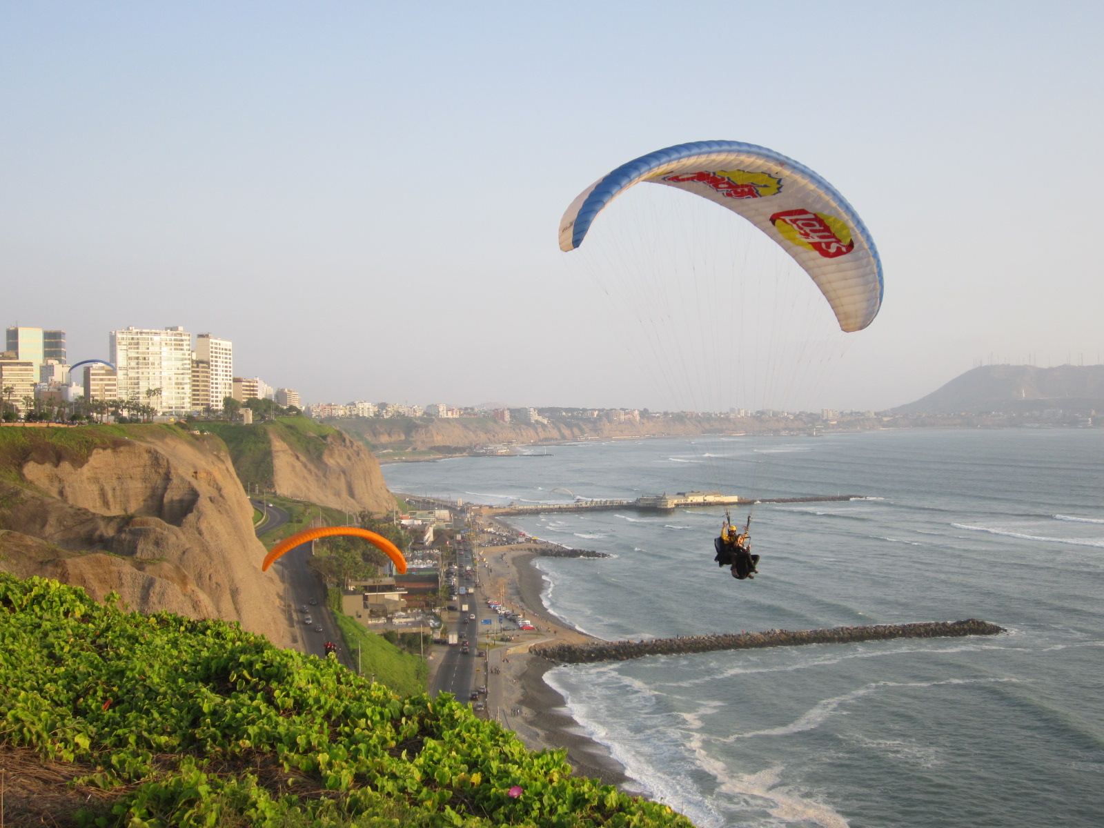 The Parque del Amor, or Park of Love, spans for blocks along the Miraflores Clifftops, overlooking the churning surf of the Pacific Ocean. It was dedicated in 1993 in the spirit of the old Peruvian custom of lovers courting in public gardens. As surfers catch their waves below and para-gliders fly overhead, locals and visitors alike enjoy a peaceful escape from the bustle of city life. Children play ball with their parents on the abundant green space, local bands perform traditional Peruvian music, cyclists, skateboarders, and runners abound, and, true to its name, couples in love stroll the walkway hand in hand or relax together on the open grass amid the beautiful flower gardens.