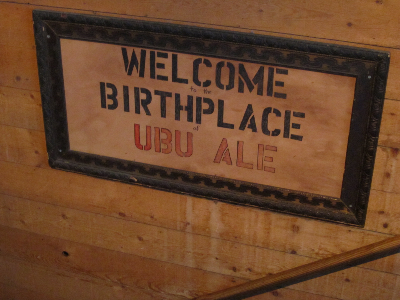 As we climbed the stairs to the dining room, we passed a sign “Welcome to the birthplace of Ubu Ale.” Ubu? What a weird name! Guess we’ll have to try some of that!