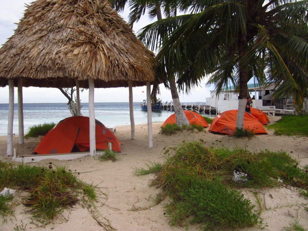 Not long after we docked, we began to notice ominous-looking clouds approaching in the distance. Although the crew had thoroughly checked the weather repots before we departed Caye Caulker, storms can arise at a moment’s notice in the Caribbean, so this one would have been difficult to predict. We hurriedly set up our tents, trying to beat the rain.
