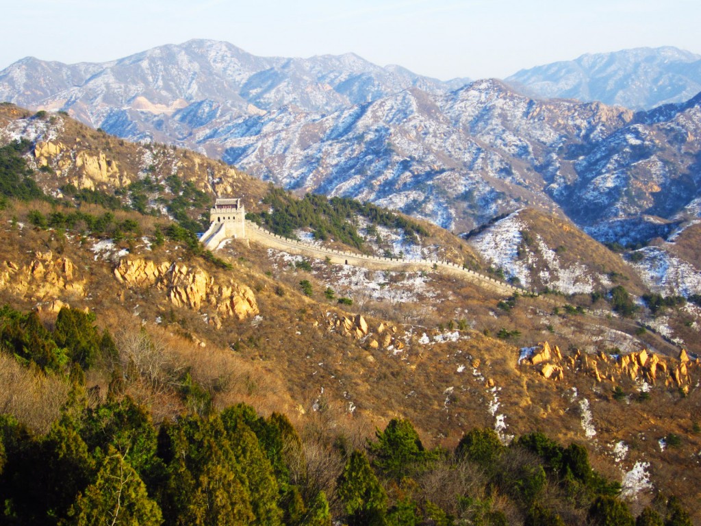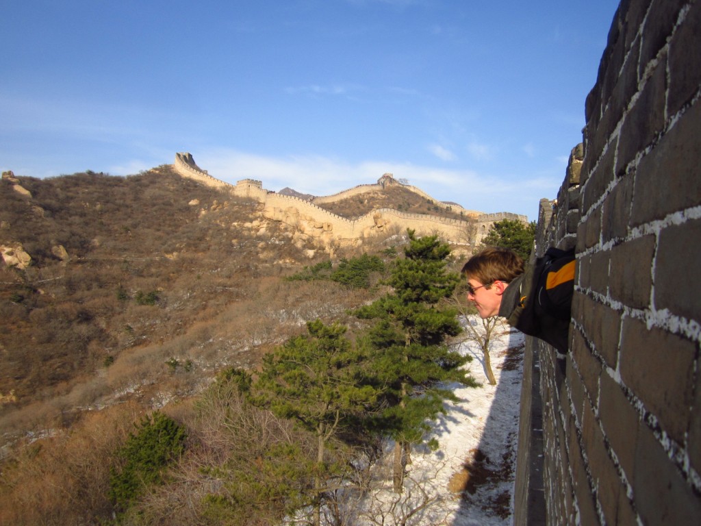 Managing to be happy in the snow, heh? Looks damn cold, but I do love the Great Wall. ALMOST makes me want to go back after a big snow storm and photograph it