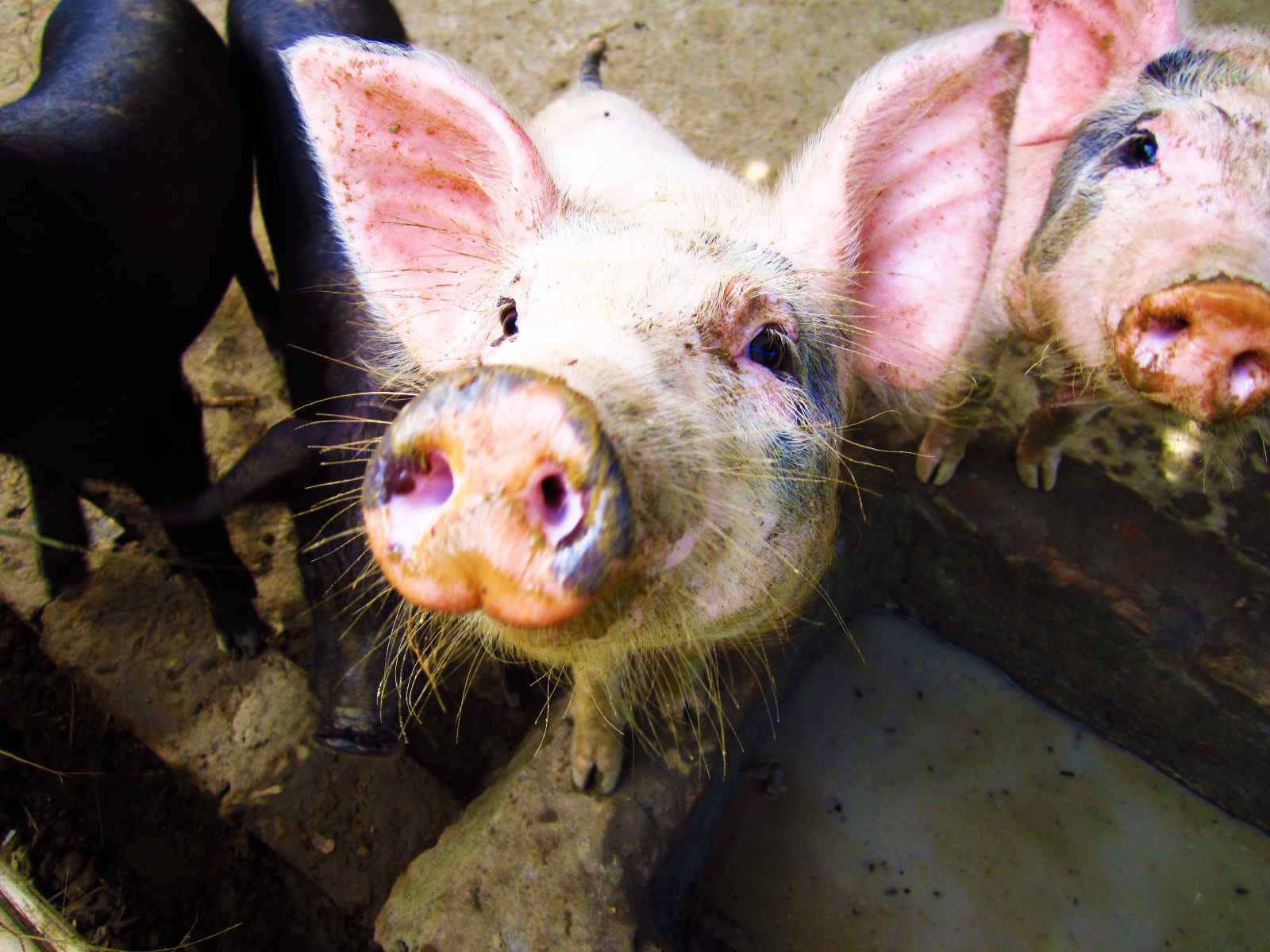 Pigs on a village farm were eager to pose.