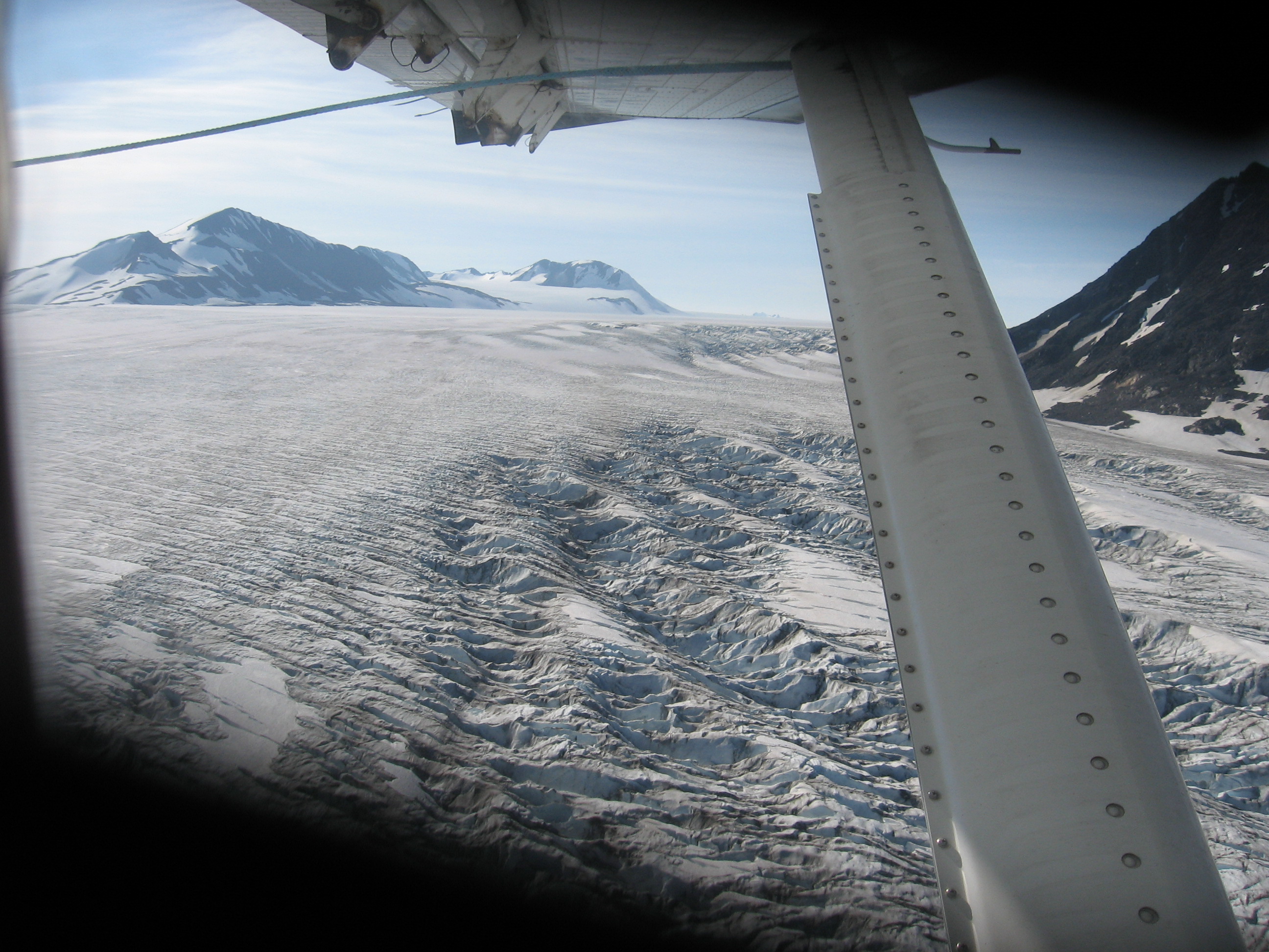 Flying over the Harding Ice Field in Alaska. Photo by Eric Jordan